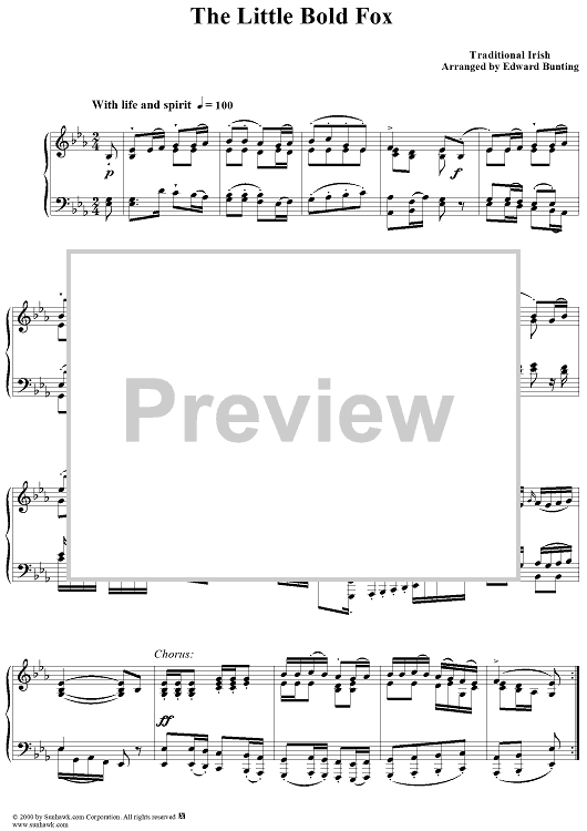 Digital Sheet Music for The Little Bold Fox by , Edward Bunting, Traditional scored for Piano Solo; id:240385