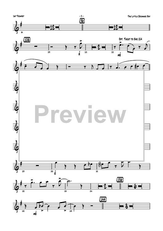 Digital Sheet Music for The Little Drummer Boy - B-flat Trumpet 1 by Henry Onorati, Harry Simeone, Katherine Davis, Joe Jackson scored for Jazz Ensemble; id:358539