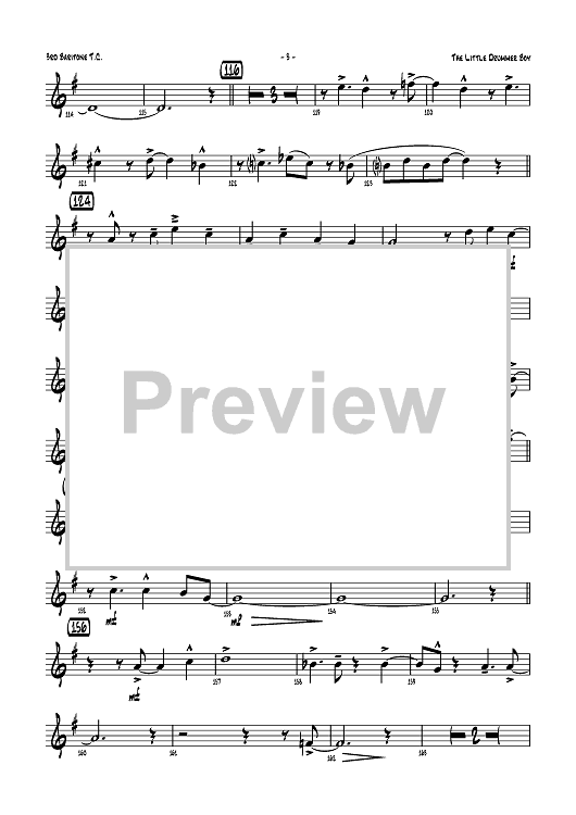 Digital Sheet Music for The Little Drummer Boy - Baritone 3 TC by Henry Onorati, Harry Simeone, Katherine Davis, Joe Jackson scored for Jazz Ensemble; id:358550