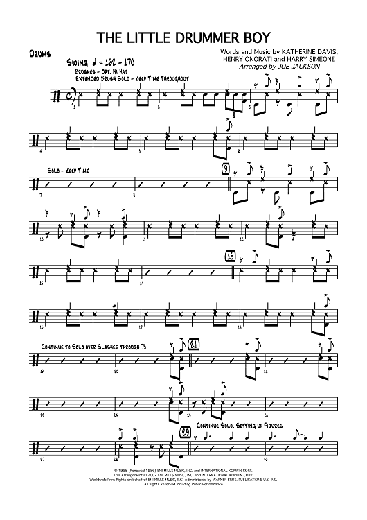 Digital Sheet Music for The Little Drummer Boy - Drums by Henry Onorati, Harry Simeone, Katherine Davis, Joe Jackson scored for Jazz Ensemble; id:358555