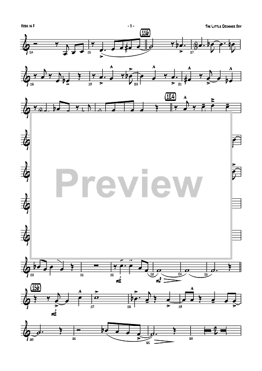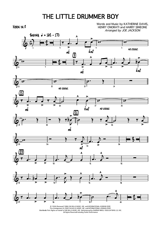 Digital Sheet Music for The Little Drummer Boy - Horn in F by Henry Onorati, Harry Simeone, Katherine Davis, Joe Jackson scored for Jazz Ensemble; id:358547