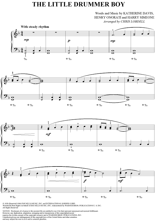Digital Sheet Music for The Little Drummer Boy by Henry Onorati, Harry Simeone, Katherine Davis, Chris Lobdell scored for Easy Piano; id:118747