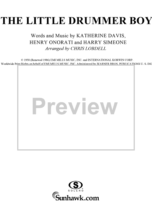 "The Little Drummer Boy" Sheet Music by Henry Onorati