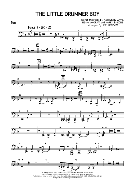 Digital Sheet Music for The Little Drummer Boy - Tuba by Henry Onorati, Harry Simeone, Katherine Davis, Joe Jackson scored for Jazz Ensemble; id:358551