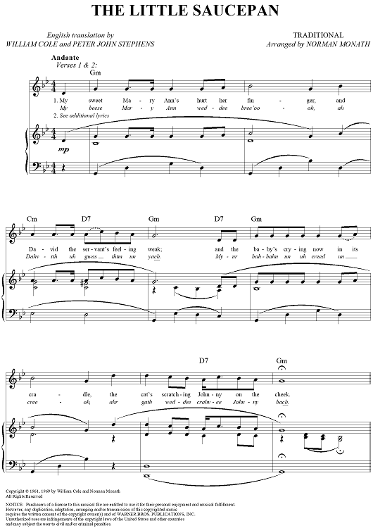 Digital Sheet Music for The Little Saucepan by Norman Monath, Traditional scored for Piano/Vocal/Chords; id:259993
