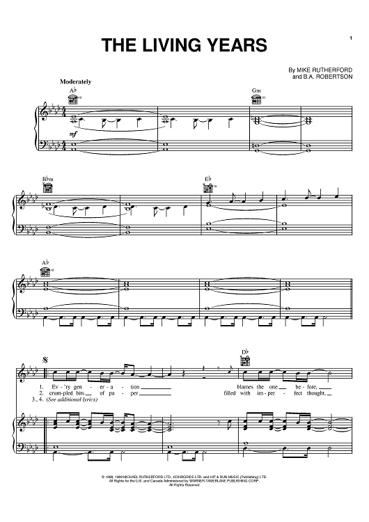 Digital Sheet Music for The Living Years by Mike Rutherford, Mika, B. A. Robertson scored for Piano/Vocal/Chords; id:380413