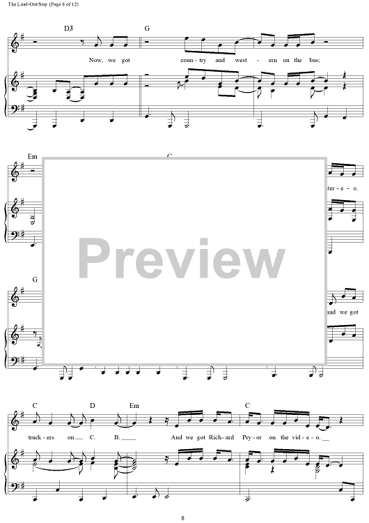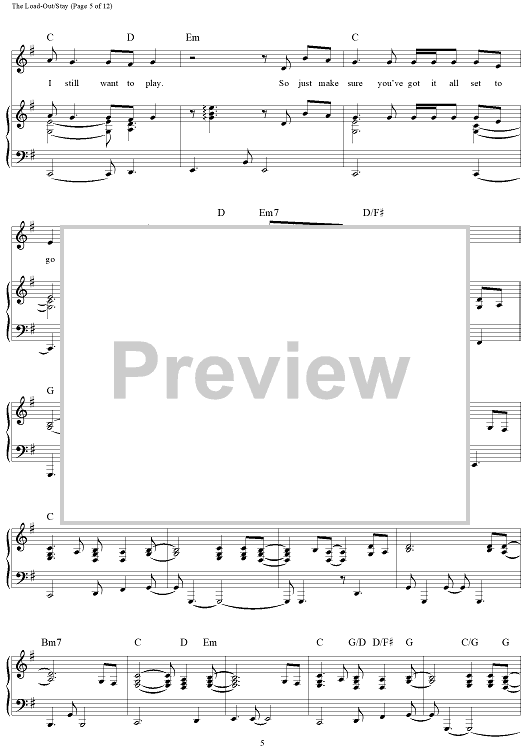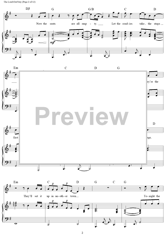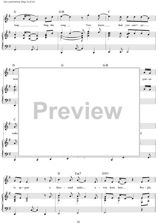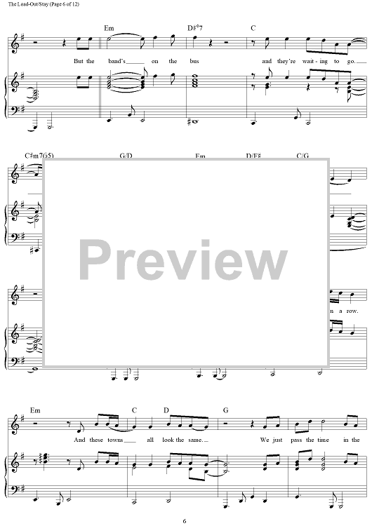 Digital Sheet Music for The Load-Out / Stay by Jackson Browne, Bryan Garofalo scored for Piano/Vocal/Chords; id:120315