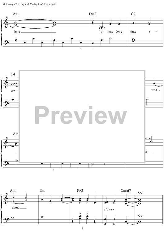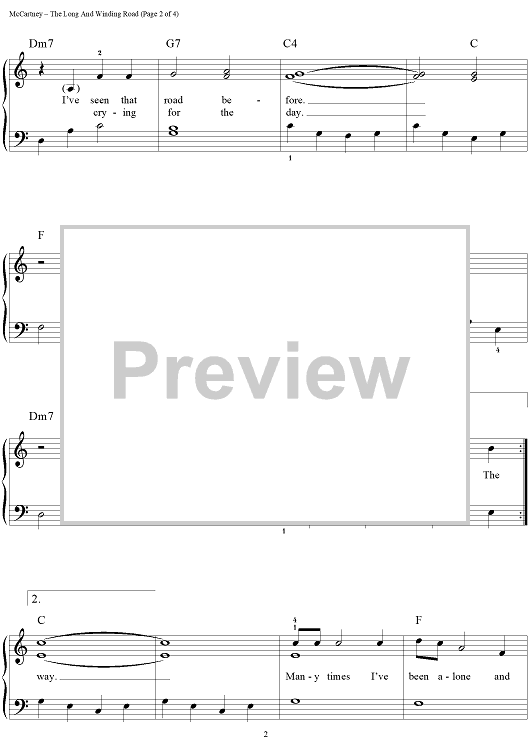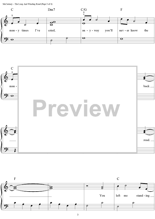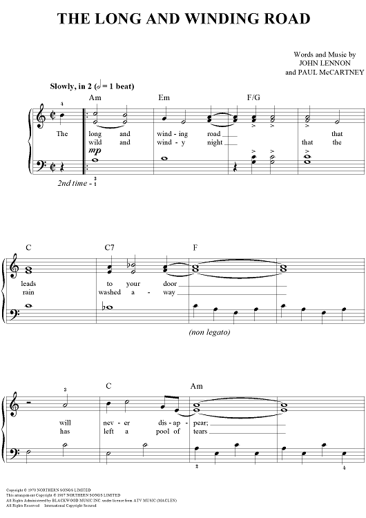 Digital Sheet Music for The Long And Winding Road by Paul McCartney, The Beatles, John Lennon scored for Easy Piano/Vocal/Chords; id:448685