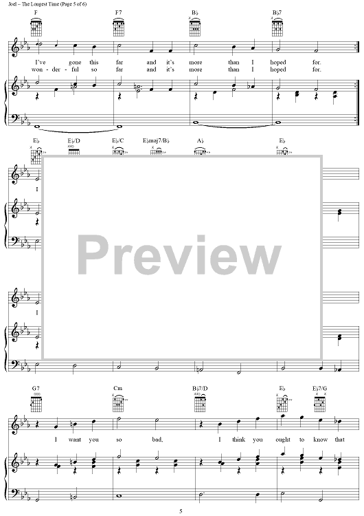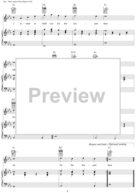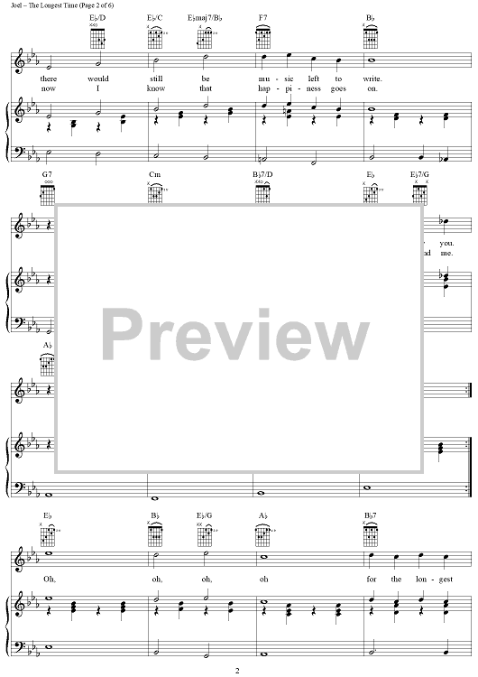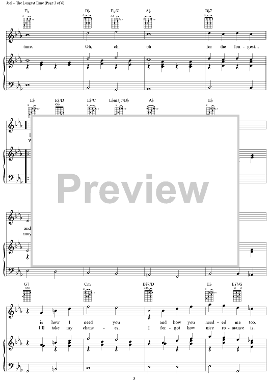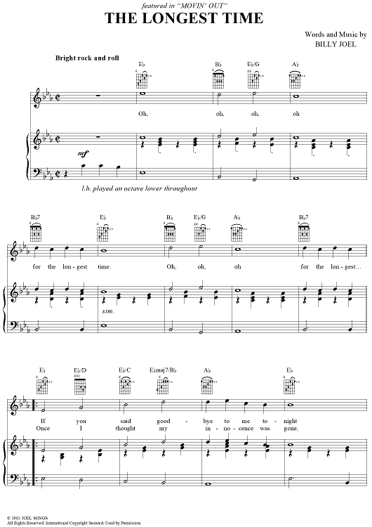 Digital Sheet Music for The Longest Time by Billy Joel scored for Piano/Vocal/Chords; id:367160
