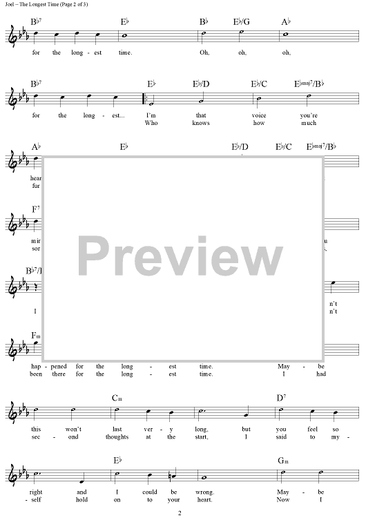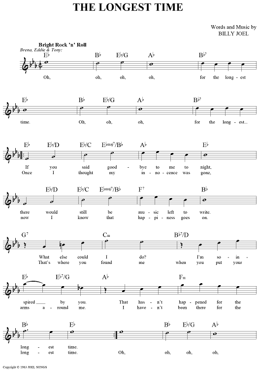 Digital Sheet Music for The Longest Time by Billy Joel scored for Lead Sheet; id:447307