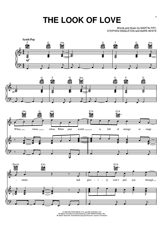 Digital Sheet Music for The Look Of Love by ABC, Martin Fry, Stephen Singleton, Mark White scored for Piano/Vocal/Chords; id:402633