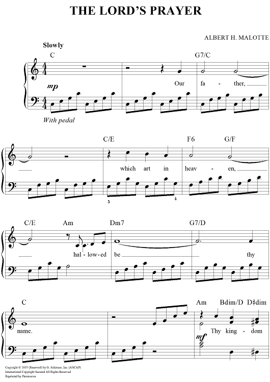 "The Lord's Prayer" Sheet Music by Albert Hay Malotte
