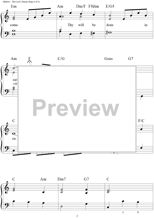 Digital Sheet Music for The Lord's Prayer by Albert Hay Malotte, John Charles Thomas scored for Easy Piano/Vocal/Chords; id:374630