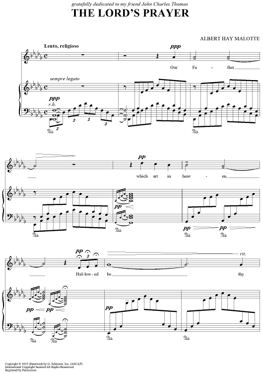 Digital Sheet Music for The Lord's Prayer by Albert Hay Malotte, John Charles Thomas scored for Piano/Vocal/Chords; id:374635