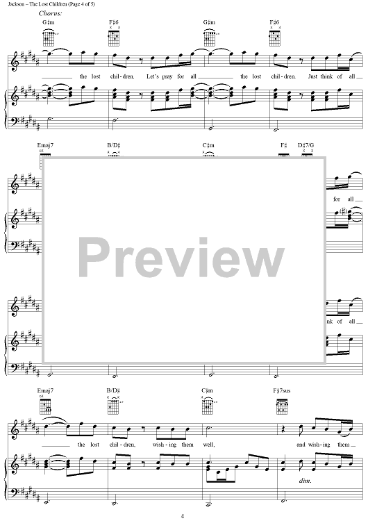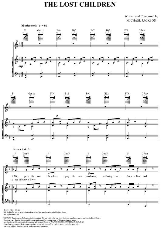 Digital Sheet Music for The Lost Children by Michael Jackson scored for Piano/Vocal/Chords; id:288930