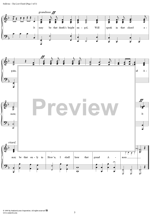 Digital Sheet Music for The Lost Chord by Arthur Sullivan, Adelaide A. Procter scored for SATB or Piano/Vocal; id:250834