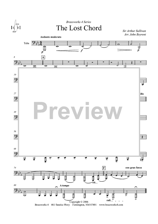 Digital Sheet Music for The Lost Chord - Tuba by Arthur Sullivan, John Beyrent scored for Brass Choir; id:320142