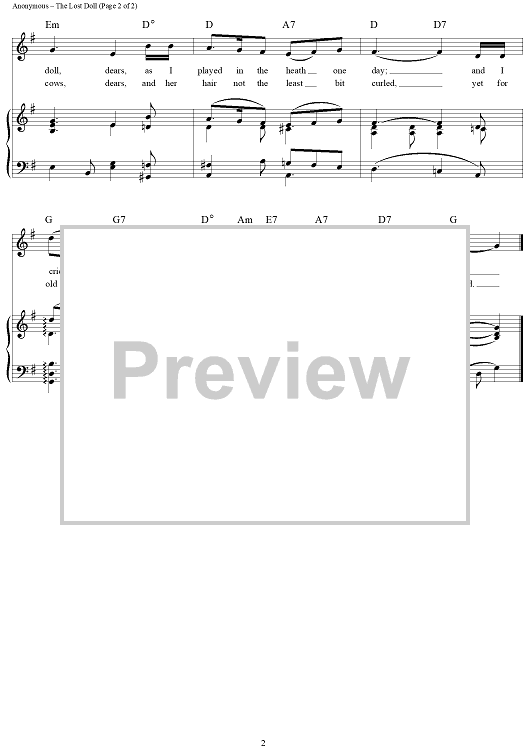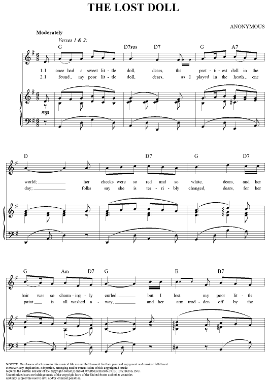 Digital Sheet Music for The Lost Doll by Unknown Writer scored for Piano/Vocal/Chords; id:277286