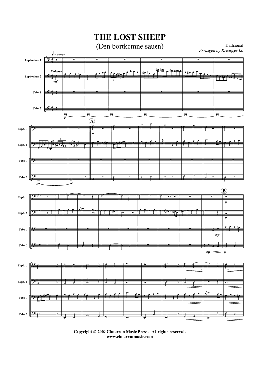 Digital Sheet Music for The Lost Sheep (Deb bortkomne sauen) - Score by Traditional, Kristoffer Lo scored for Tuba Quartet; id:416340