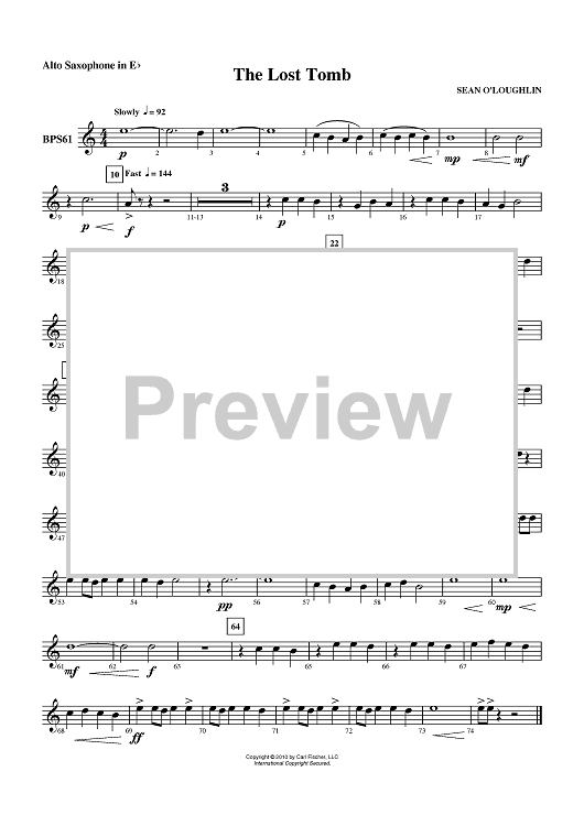 "The Lost Tomb - Alto Sax" Sheet Music by Sean O'Loughlin