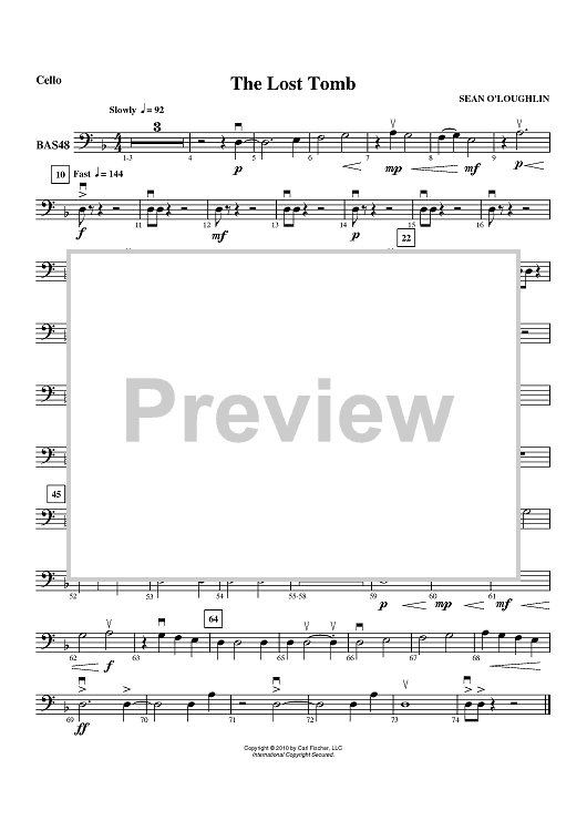 Digital Sheet Music for The Lost Tomb - Cello by Sean O'Loughlin scored for Orchestra; id:410927