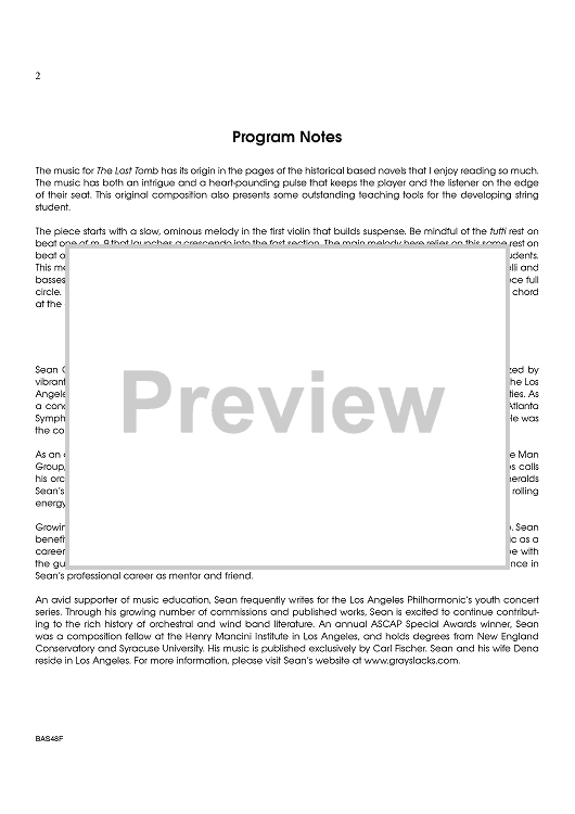 Digital Sheet Music for The Lost Tomb - Score by Sean O'Loughlin scored for Orchestra; id:410922