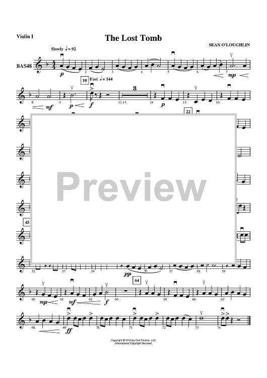 "The Lost Tomb - Violin 1" Sheet Music by Sean O'Loughlin