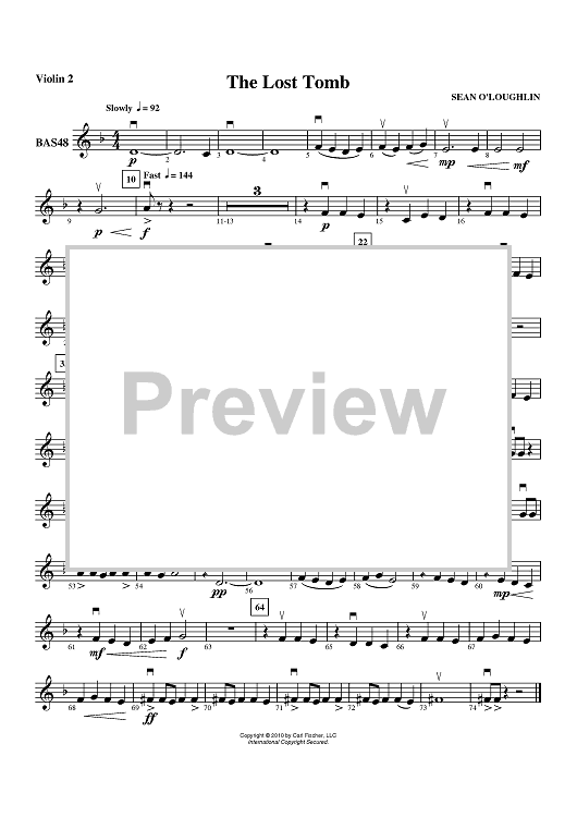 Digital Sheet Music for The Lost Tomb - Violin 2 by Sean O'Loughlin scored for Orchestra; id:410924