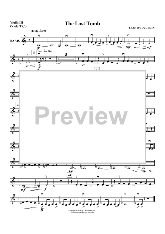 "The Lost Tomb - Violin 3" Sheet Music by Sean O'Loughlin