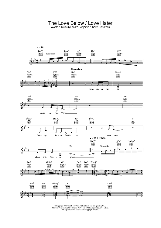 Digital Sheet Music for The Love Below / Love Hater by André 3000, OutKast, Kevin Kendricks scored for Lead Sheet; id:382895