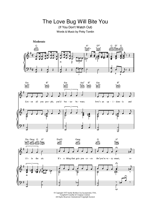 Digital Sheet Music for The Love Bug Will Bite You (If You Don't Watch Out ) by Pinky Tomlin scored for Piano/Vocal/Chords; id:394450