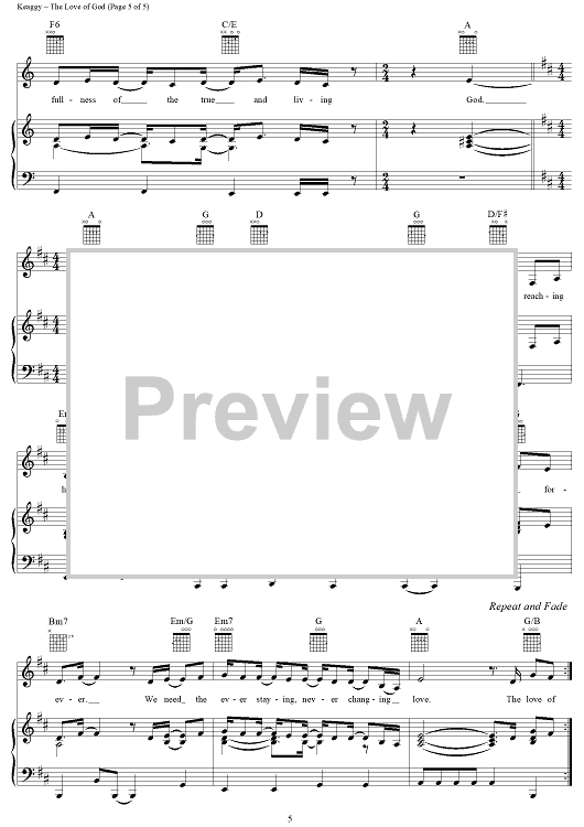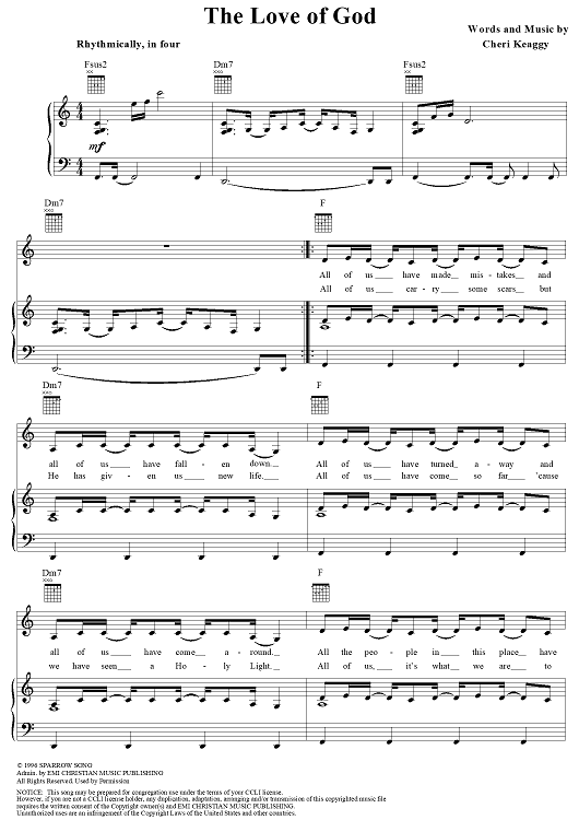 Digital Sheet Music for The Love Of God by Cheri Keaggy scored for Piano/Vocal/Chords; id:249836