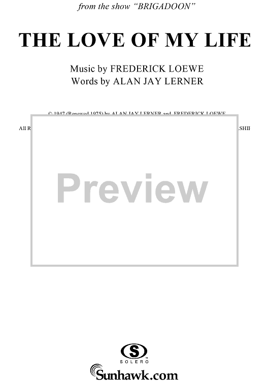 "The Love of My Life" Sheet Music by Frederick Loewe