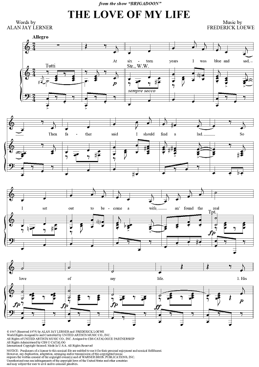 Digital Sheet Music for The Love of My Life by Frederick Loewe, Alan Jay Lerner scored for Piano/Vocal/Chords; id:116868