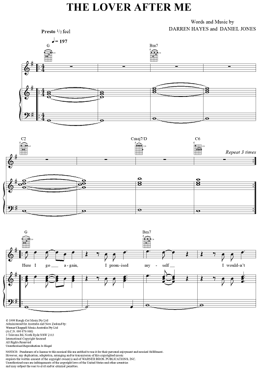 Digital Sheet Music for The Lover After Me by Darren Hayes, Daniel Jones, Savage Garden scored for Piano/Vocal/Chords; id:267173