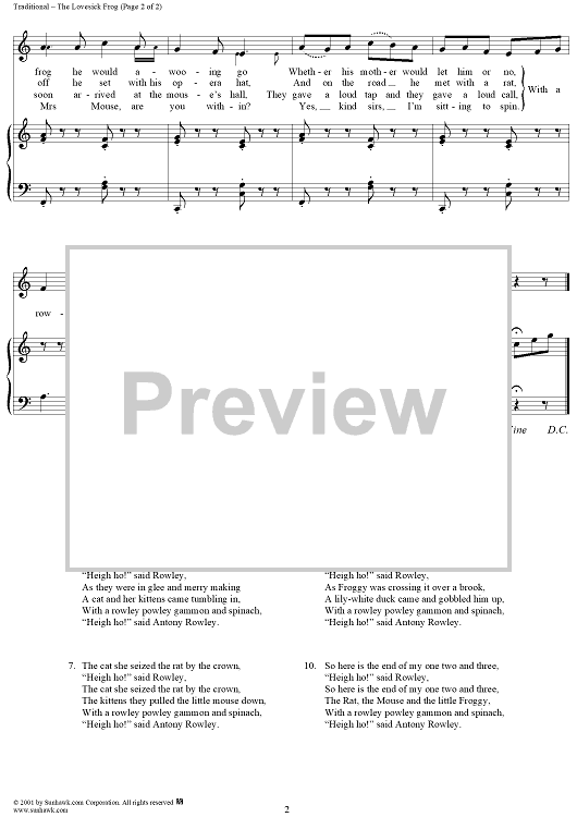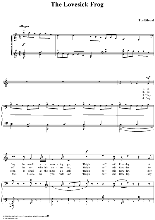 Digital Sheet Music for The Lovesick Frog by Traditional scored for Piano/Vocal; id:258561