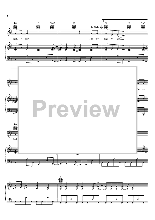 Digital Sheet Music for The Lucky One by Faith Hill, Brad Warren, Brett Warren, Jay Joyce scored for Piano/Vocal/Chords; id:389482