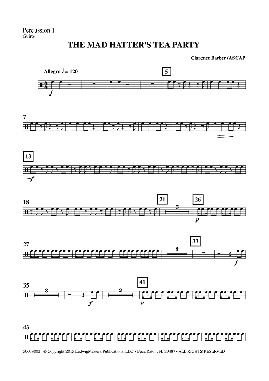 Digital Sheet Music for The Mad Hatter's Tea Party - for Percussion Ensemble - Percussion 1 by , Clarence Barber scored for Percussion Ensemble; id:462497