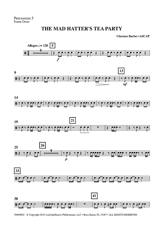 Digital Sheet Music for The Mad Hatter's Tea Party - for Percussion Ensemble - Percussion 5 by , Clarence Barber scored for Percussion Ensemble; id:462501