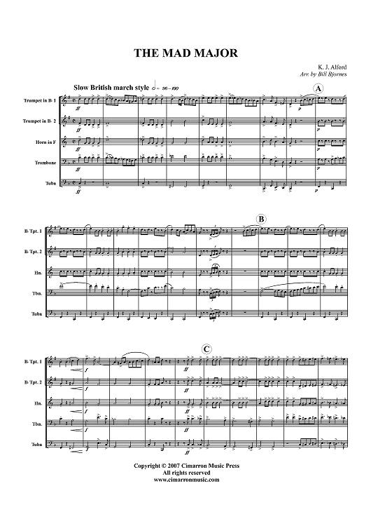 Digital Sheet Music for The Mad Major - Score by Kenneth J. Alford, Bill Bjornes scored for Brass Quintet; id:360839
