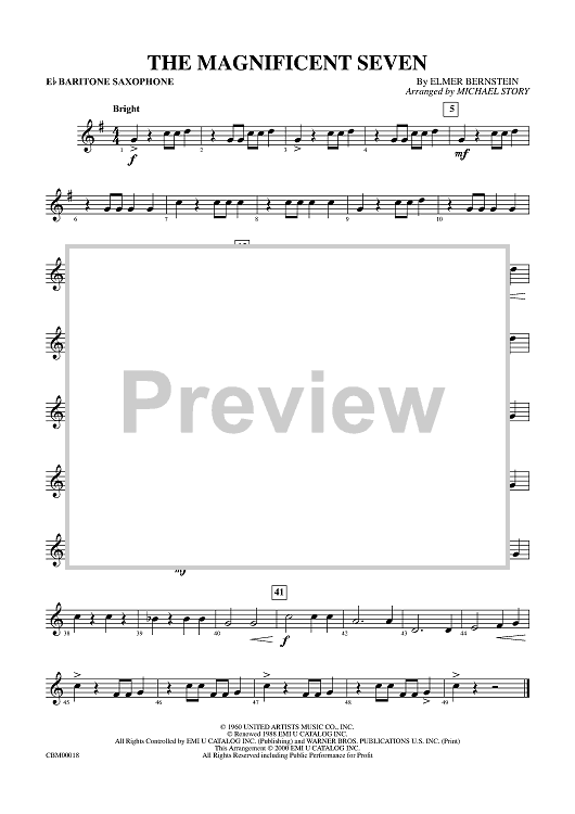 Digital Sheet Music for The Magnificent Seven - Baritone Saxophone by Elmer Bernstein, Michael Story scored for Concert Band; id:310464