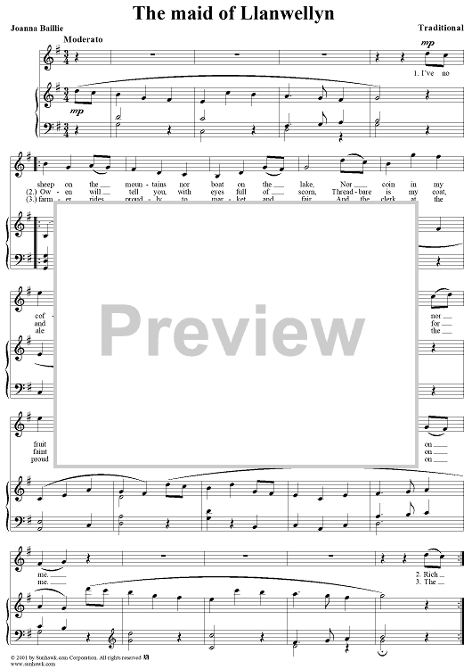 Digital Sheet Music for The Maid of Llanwellyn by Joanna Baillie, Traditional scored for Piano/Vocal; id:258562