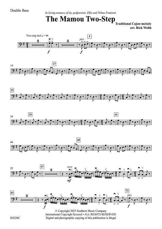"The Mamou Two-Step - Double Bass" Sheet Music by Traditional