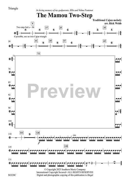 "The Mamou Two-Step - Triangle" Sheet Music by Traditional