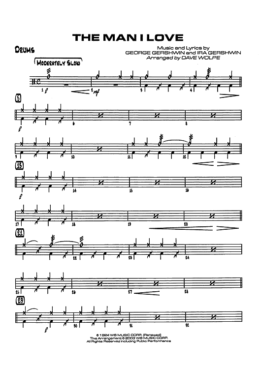 "The Man I Love - Drums" Sheet Music by George Gershwin
