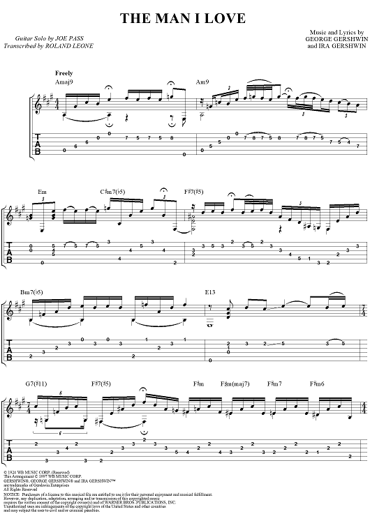 "The Man I Love" Sheet Music by Joe Pass