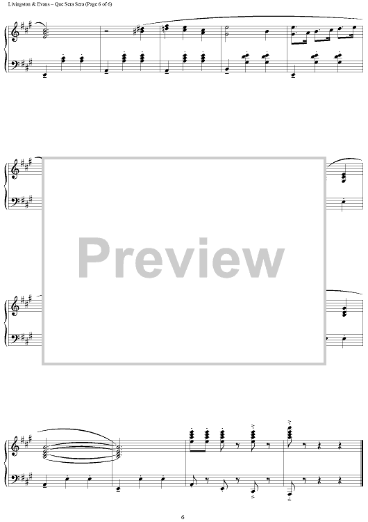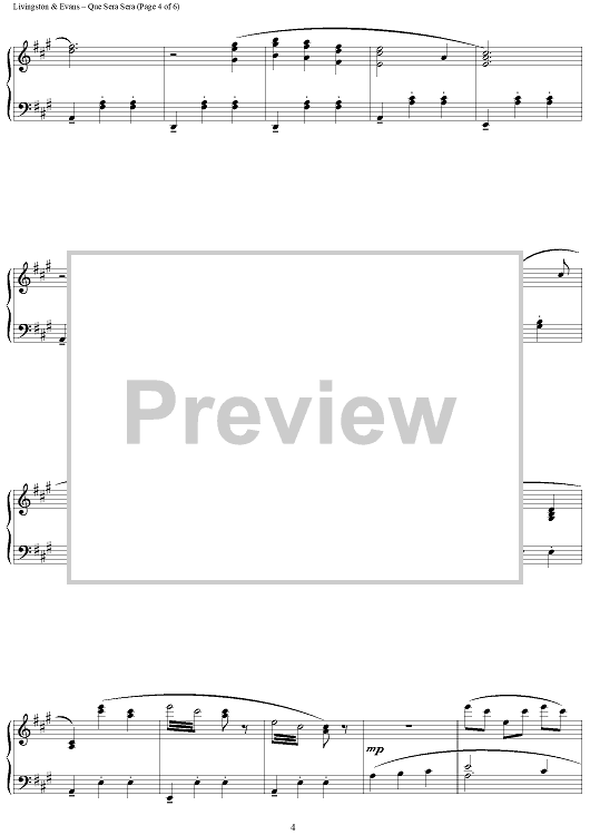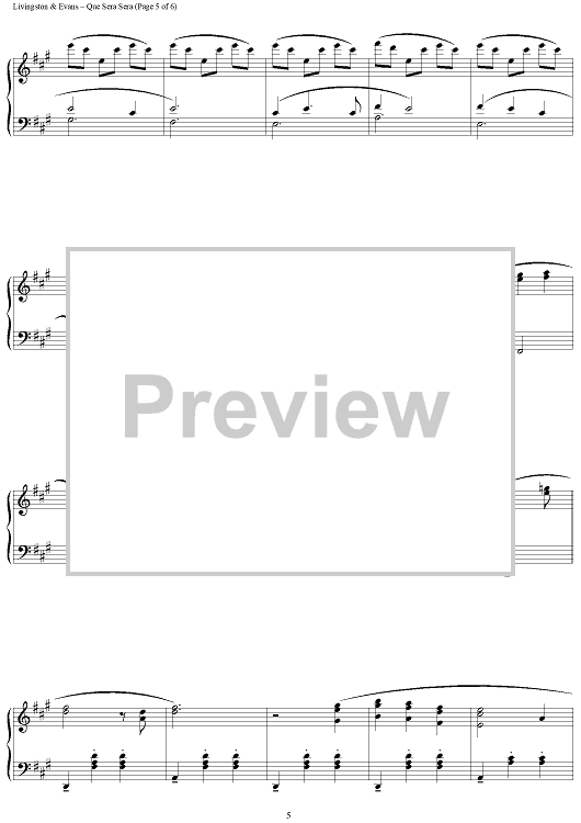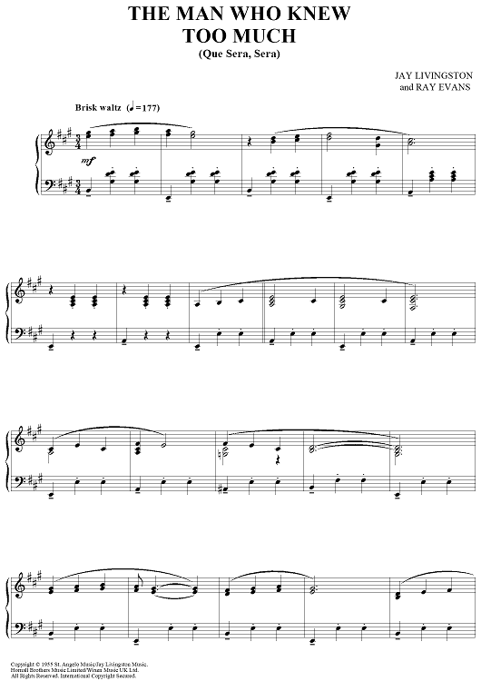 Digital Sheet Music for The Man Who Knew Too Much (Que Sera, Sera) by Jay Livingston, Richard Evans scored for Piano Solo; id:456368