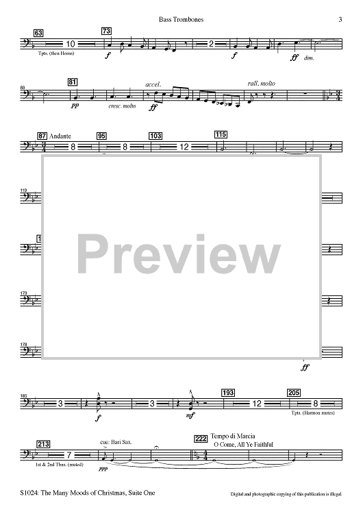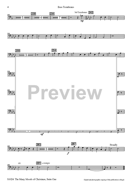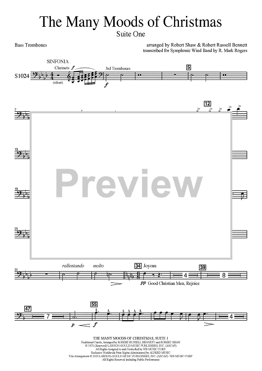 Digital Sheet Music for The Many Moods of Christmas: Suite No. 1 - Bass Trombone by Robert Russell Bennett, R. Mark Rogers, Robert Shaw scored for Concert Band; id:502773