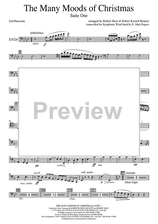 Digital Sheet Music for The Many Moods of Christmas: Suite No. 1 - Bassoon 2 by Robert Russell Bennett, R. Mark Rogers, Robert Shaw scored for Concert Band; id:502758