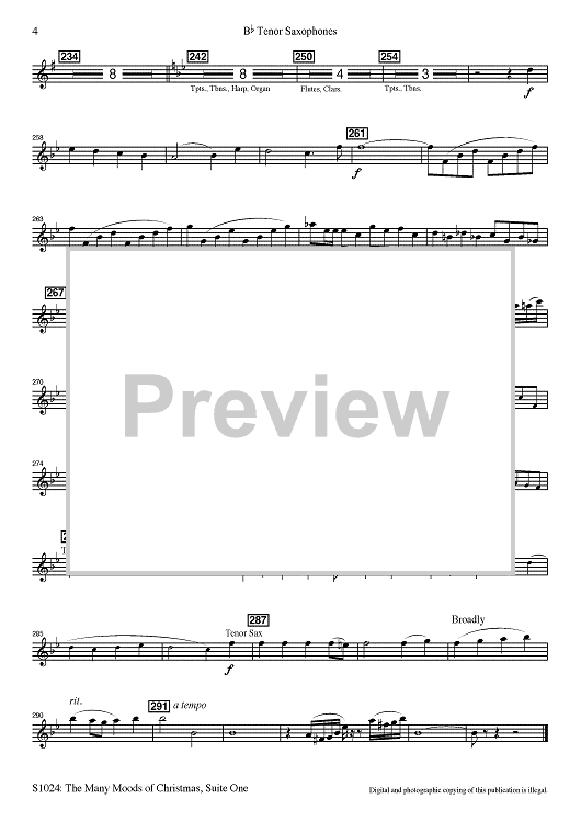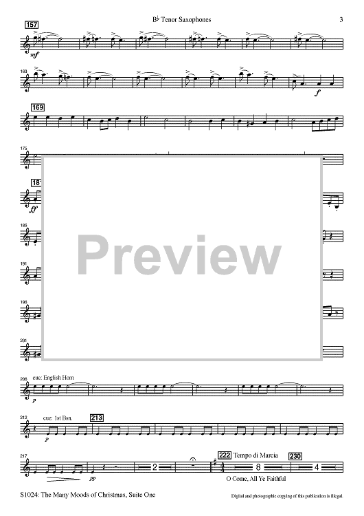 Digital Sheet Music for The Many Moods of Christmas: Suite No. 1 - Bb Tenor Sax by Robert Russell Bennett, R. Mark Rogers, Robert Shaw scored for Concert Band; id:502762